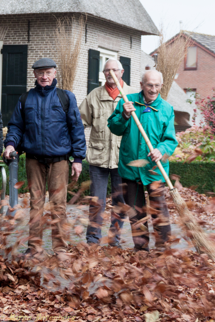 … en een bladblazer maakt het werk een stuk lichter! Wekelijks houdt een ploeg dorpsgenoten zich bezig met het vegen van het kerk- en dorpsplein. Zeker in de herfst, als het meeste blad van de bomen valt, is dit een behoorlijke klus.
