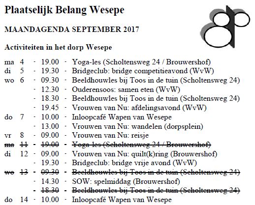 Rectificatie agenda Dorpskrant Wesepe