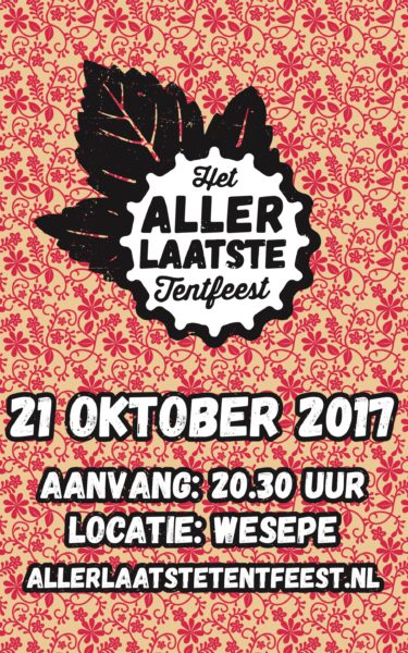 Op 21 oktober 2017 vindt na acht jaar weer het Allerlaatste Tentfeest plaats. Een verwarmde feesttent en een verrassend programma vormen de basis voor de gezellige feestavond voor jong en oud. Ook is er weer speciaal voor de oudere bezoeker een gezellige ruimte bij aan de tent met zitbanken, bar en goed zicht op het podium. De muzikale omlijsting wordt verzorgd door Partyband TOF en DJ-team Sjiek. En uiteraard mogen The Annonanno’s ook niet ontbreken (organisatoren van het vorige Allerlaatste Tentfeest).