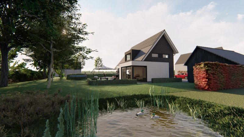 Artist impression van een woning zoals die gebouwd kan worden op de Hiethaarshoek
