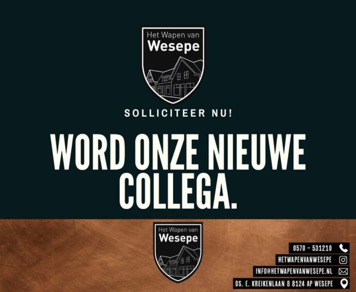 Spreekt deze vacature jou aan? Mail dan je CV, motivatie naar info@hetwapenvanwesepe.nl (T.A.V Jelle) en we nodigen je graag uit voor een kop koffie.