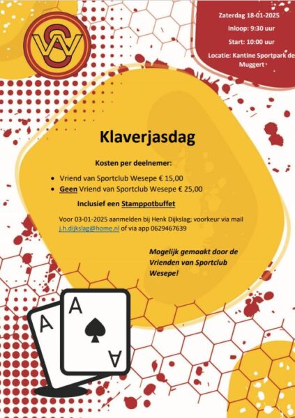 Klaverjasdag op de sportclubGeplaatst op 9 januari 2025 17:37 | Bericht navigatie ← Vorig berichtVolgend bericht %rarr;