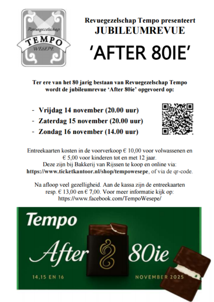 Jubileumrevue Tempo 14-15-16 novemberGeplaatst op 23 oktober 2025 10:44 | Bericht navigatie ← Vorig berichtVolgend bericht %rarr;