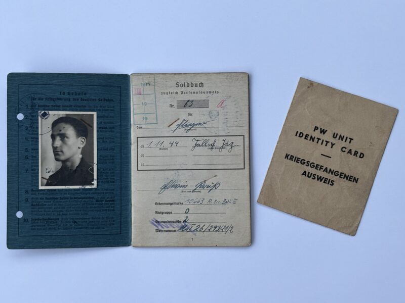 Luftwaffe Soldbuch en identiteitskaart voor krijgsgevangenen van Fallschirmjäger Edwin Pruß (1926-2021) [afbeelding 1] ,