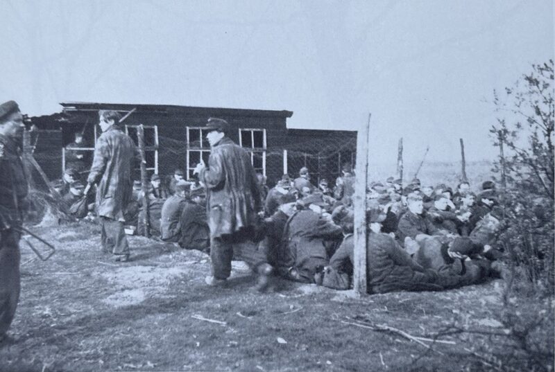 Afb. 2: Duitse krijgsgevangenen in kippenren aan de Oerdijk in Schalkhaar, met twee krijgsgevangen gemaakte Fallschirmjäger