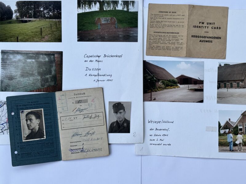 Tergkomend op Edwin Pruß: hij koos voor de Duitse Luftwaffe omdat hij graag piloot wilde worden. Brandstofschaarste bij de Luftwaffe zorgde ervoor dat hij niet meer tot piloot kon worden opgeleid. Zo kwam Edwin op 1 januari 1945 als soldaat van de 6. Fallschirmjäger Division bij het Kapelsche Veer terecht. In de loopgraven van dit Duitse bruggenhoofd was het ´s nachts ijskoud en er werd zwaar gevochten. Tijdens een beschieting werd Pruß door een granaatscherf onder zijn linker schouder getroffen, waarbij ook een paar ribben braken. Als gewonde werd hij naar een Duits veldhospitaal afgevoerd. Op 21 maart 1945 werd hij daaruit ontslagen. Tien dagen lang zwierf Pruß door Nederland, op zoek naar zijn eenheid die Noord-Brabant inmiddels verlaten had.